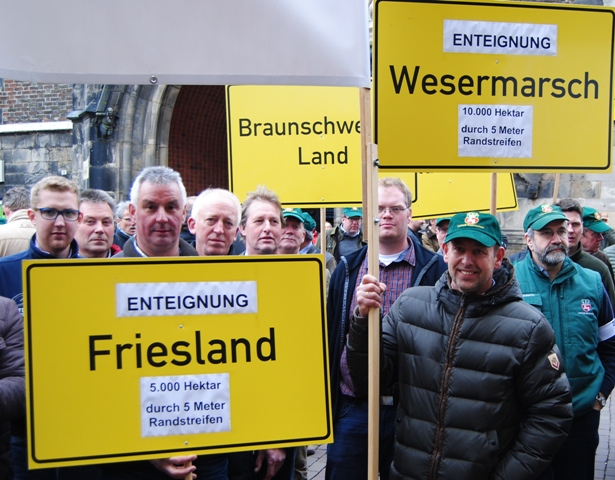 Am 05. April 2017 übergaben die Kreislandvolkverbände Friesland und Wesermarsch in Hannover zusammen 800 Einsprüche zur neuen Gewässerrandstreifenregelung an Minister Wenzel. Insgesamt hatten sich 14 Kreislandvolkverbände auf den Weg gemacht und 3500 Einsprüche sowie 4000 Unterschriften überreicht.
