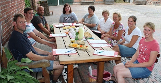 Abschließend konnten die Teilnehmer bei einer Verkostung verschiedener auf dem Betrieb hergestellter Käsesorten die Führung zusammen mit Maike Cornelius-Bruns, Niklas und Elisabeth Bruns reflektieren.