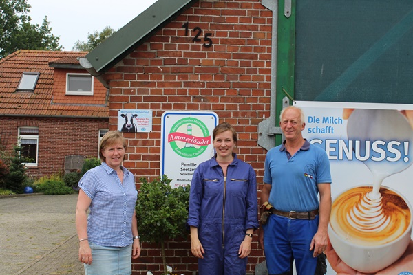 Unter dem Motto „Auf die Höfe fertig los!“ kam im Rahmen eines Hofpraktikums die SPD-Bundestagsabgeordnete Susanne Mittag auf den Milchviehbetrieb von Dirk Hanken nach Varel-Birkenheide, SPD-Bundestagskandidatin Siemtje Möller auf den Betrieb von Hartmut Seetzen nach Varel-Neuenwege und Astrid Grotelüschen (CDU, Mitglied des Bundestages) auf den Betrieb von Rainer Mönnich nach Berne. Acht regionale Landvolkverbände, mit insgesamt 28.000 Mitgliedern im Nordwesten Niedersachsens, haben die Initiative „Echt grün – Eure Landwirte“ gebildet, um mit Sachargumenten für einen offenen Dialog zwischen Landwirtschaft, Politik und Gesellschaft zu werben und direkte Gespräche zu ermöglichen. Die Basis guter und sachlich orientierter Gespräche basiert auf der Kenntnis von Fakten, Zusammenhängen und idealerweise auch auf persönlichen Erfahrungen. Deshalb lud die Initiative „Echt grün – Eure Landwirte“ im Vorfeld der Bundestagswahlen 2017 politische Vertreter auf die Höfe und Betriebe ein. Im Rahmen eines „Hofpraktikums“ gab es die Möglichkeit, den Arbeitsalltag auf einem Hof einmal ganz real mitzuerleben. Am 26.7.2017 verbrachte Susanne Mittag den gesamten Tag von 9 bis 17 Uhr auf dem Betrieb von Dirk Hanken. Zunächst wartet ein Betriebsrundgang, um den Betrieb kennen zu lernen. Im Anschluss warteten Aufgaben wie z.B. Tiere umweiden, Zäune umstecken, melken und Kälber füttern. Für sie war es ein informativer und ereignisreicher Tag. Frau Mittag sagte: „Dieses Hofpraktikum ist wirklich toll um alle ungeklärten Fragen zu beantworten und einen richtigen Einblick in die Arbeit auf einem landwirtschaftlichen Betrieb zu bekommen.“ Siemtje Möller hatte sich für den 17.8.2017 für einen Praktikumstag auf dem Betrieb von Hartmut Seetzen angemeldet. Sie fand jedoch nur kurz Zeit für einen Einblick in die Arbeit auf dem Betrieb von Hartmut Seetzen. In der Zeit von 10 bis 12 Uhr wurden zunächst die Kühe aus dem Stall auf die Weide gelassen. Im Anschluss mussten Kälber eingestreut werden. Siemtje Möller packte sofort mit an, so dass die Arbeit schnell getan war. Weiter ging es bei den Rindern, die mit Kraftfutter gefüttert wurden. Danach kontrollierten Hartmut Seetzen und Siemtje Möller einen Maisacker. Es blieb noch ein wenig Zeit übrig, um noch einen Blick auf und vor allem in die Biogasanlage zu werfen. Dort wird zurzeit saniert, so dass es die Möglichkeit gab einen Behälter von innen zu sehen. Beim abschließenden Mittagessen sagte Siemtje Möller: „Das waren wirklich interessante Stunden, in denen ich viel gelernt habe und einen tollen Einblick in einen landwirtschaftlichen Betrieb bekommen konnte.“ Auch Astrid Grotelüschen meldete sich für den 11.09.2017 für ein Hofpraktikum an. Sie verbrachte den Vormittag auf dem Milchviehbetrieb von Rainer Mönnich in Berne. Um 7 Uhr begann ihr „Dienst“ auf dem Hof mit dem Melken. Da Frau Grotelüschen selbst vom Hof kommt, kannte sie das Melken von früher im Anbindestall. Nun einmal im Melkstand zu melken, war für sie eine schöne Erfahrung. Sie sagte mit einem Lächeln:“ Im Vergleich zum Melken im Anbindestall, ist der Melkstand wirklich sehr viel angenehmer und vor allem rückenfreundlicher!“ Im Anschluss blieb noch Zeit für ein ausgedehntes Gespräch und kleinere Arbeiten, wie das Kälber sortieren oder auch Futter ranschieben. In Niedersachsen wurden insgesamt 13 Hofpraktika im Vorfeld der Bundestagswahl durchgeführt.